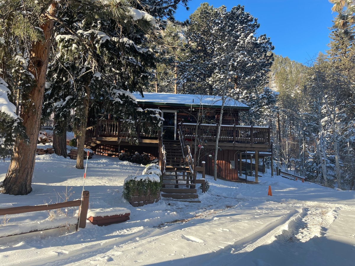 This historic rustic log cabin built in 1953 has been updated. It sits near the foot of Pikes Peak and Pike National Forest & 17 minutes from Downtown Colo Spgs. The cabin sits at 7800' and is usually cool and comfortable temperature inside, we have added Central Air Conditioning to further enhance your comfort. Denver Airport (DIA) is a 90 minute drive Colorado Springs Airport (COS) is a 32 minute drive. Hiking, Fishing, Kayaking, Garden of the Gods, North Pole Santas Workshop, USAFA,