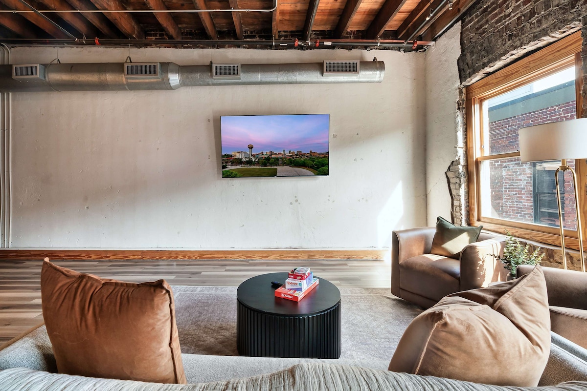 Պատմական հմայքը համապատասխանում է ժամանակակից նրբագեղությանը այս շքեղ քաղաքային պենտհաուսում: Հանգստացեք բաց կոնցեպտային հյուրասենյակում, որտեղ կան բացահայտված աղյուսներ և մեծ պատուհաններ ։ Ուտեստ պատրաստեք շեֆ - խոհարարի խոհանոցում և վայելեք բացօթյա ճաշասեղանին ։ Տախտակամածի վրա հանգստանալիս մասնակցեք քաղաքի ՝ Նոքսվիլ քաղաքի և բլուրների համայնապատկերին ։ Հավաքվեք բացօթյա կրակարանի շուրջ և խմիչք վայելեք սեփական տանիքի տախտակամածի վրա ՝ աստղերի տակ ։