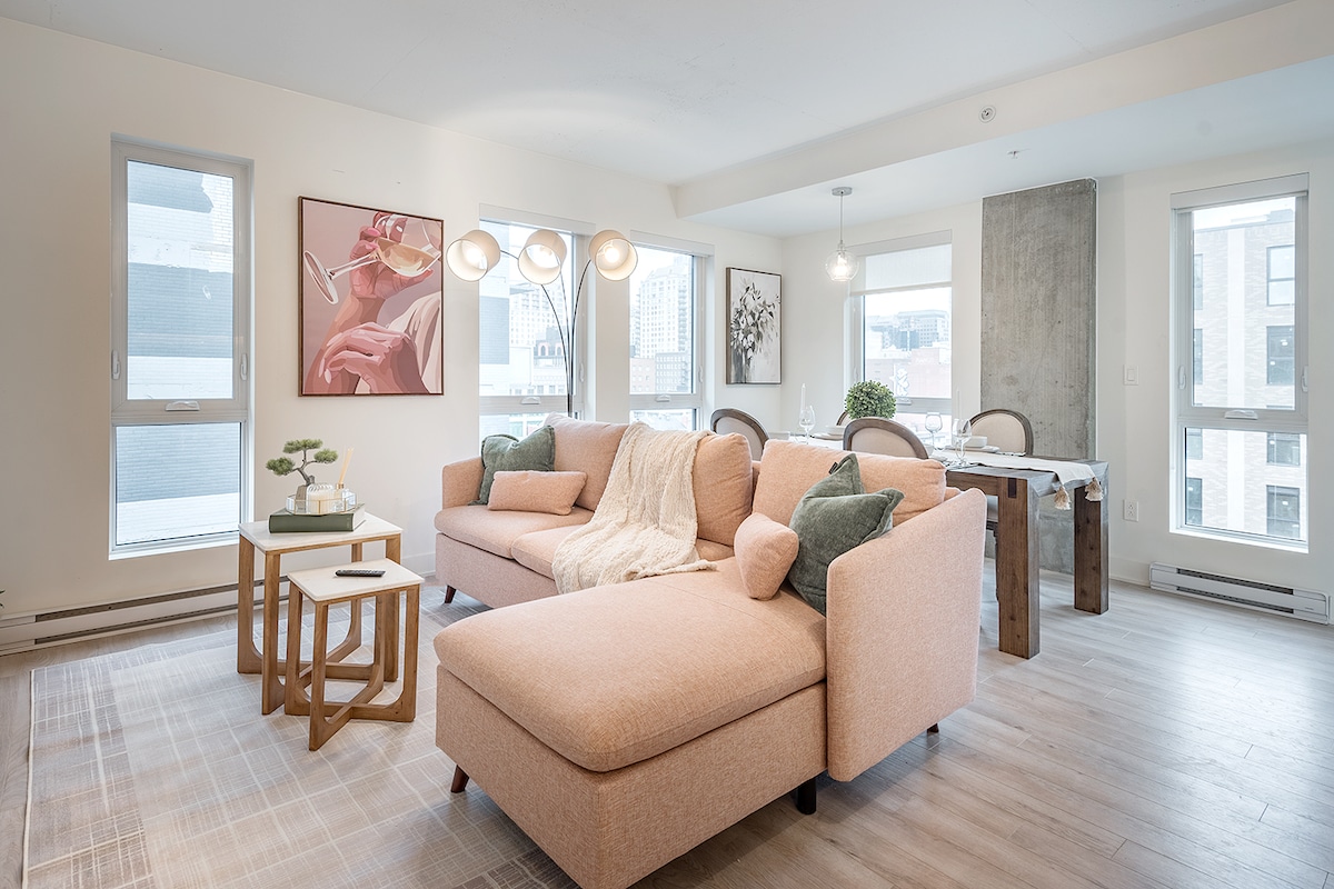 Enjoy a refined stay in this modern Downtown Montreal retreat for up to six guests. The unit offers a queen bedroom, two sofa beds, a full kitchen, and a contemporary bathroom. With bright open-concept living and a prime location near dining, shopping, and major attractions, it’s ideal for families, professionals, and long-term guests.