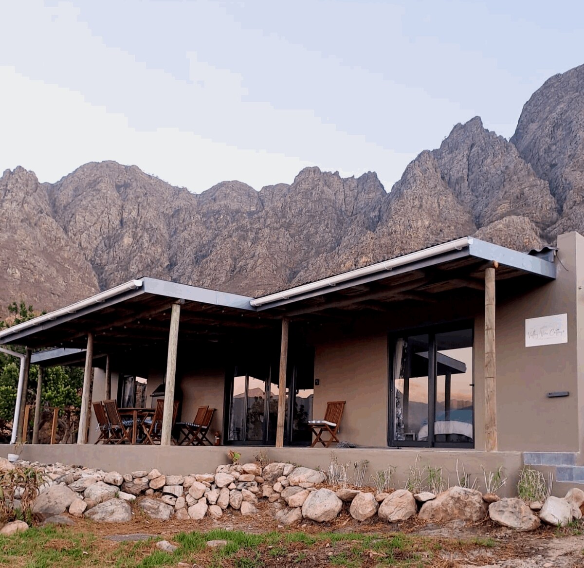 Welcome to Valley View Cottage, a newly renovated retreat nestled at the foot of the majestic Franschhoekberge. Surrounded by breathtaking mountain views and natural beauty, this peaceful escape offers the perfect blend of comfort and countryside charm.