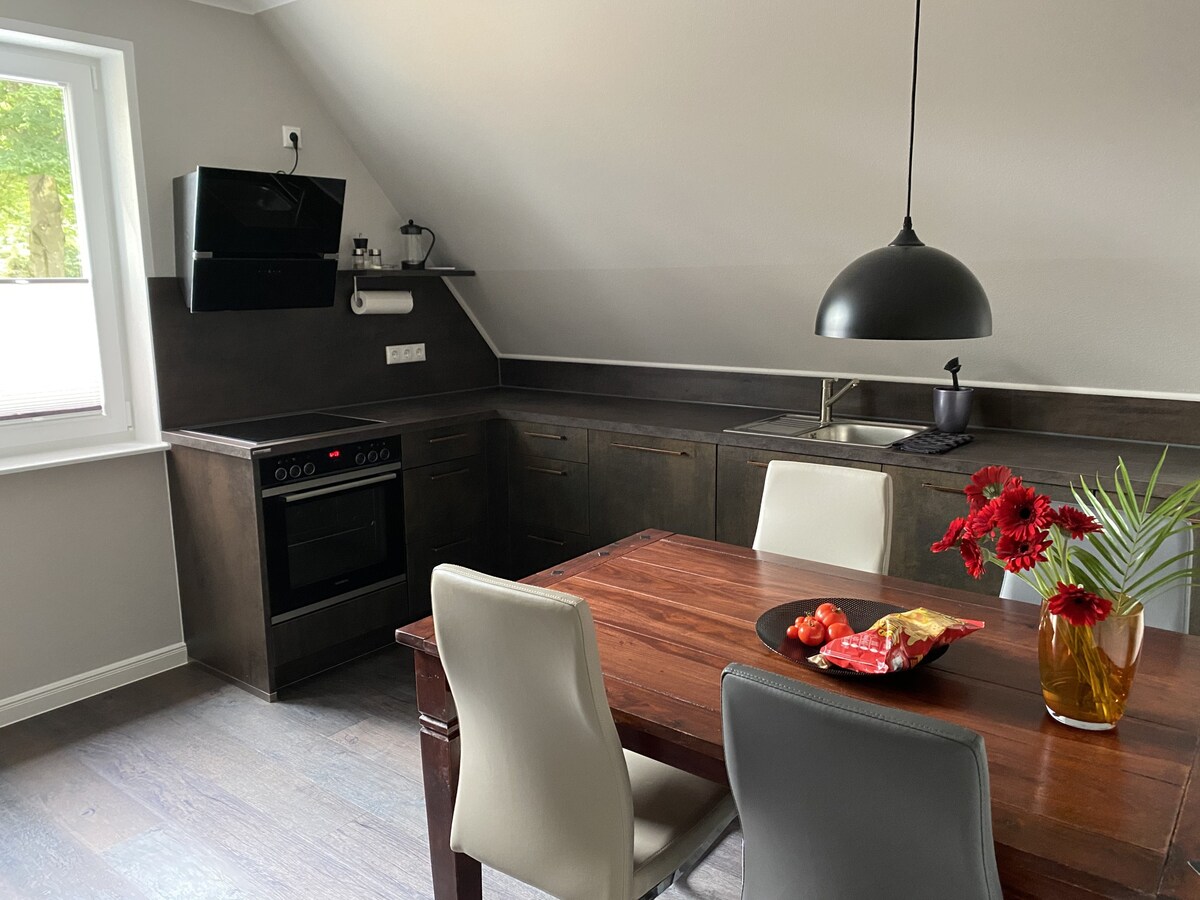 Bright, spacious upper-floor apartment in a Swedish-style house with a clear layout and 2–4 bedrooms. Perfect for families, friends, or colleagues, offering private rooms for up to four individuals or accommodating up to six guests with shared beds. Enjoy a quiet, rural setting near the A1, ideally located between Hollenstedt and Buchholz. Great base for trips to the Lüneburg Heath, Hamburg, Bremen, or Hanover. Comfortable living with excellent regional connections.