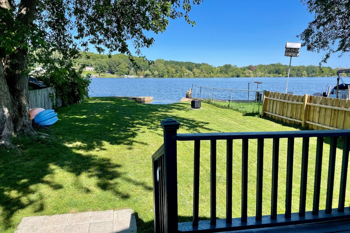 Private deck with grill, fire pit, parking space, washer/dryer, pack n play, waterfront gazebo (shared), picnic tables, swimming, kayaks, paddle boards, row boat, pedal boat, fishing, ice fishing, ( bring your fishing gear, all water boating / kayaks /paddle boards, are ONLY available to use for staying / paying guests. Lake is electric motors only. (2 pet max)Dogs allowed (aggressive breed dogs not allowed, all dogs must be leashed, no cats allowed). Short drive to Frankenmuth approx 40 mins.