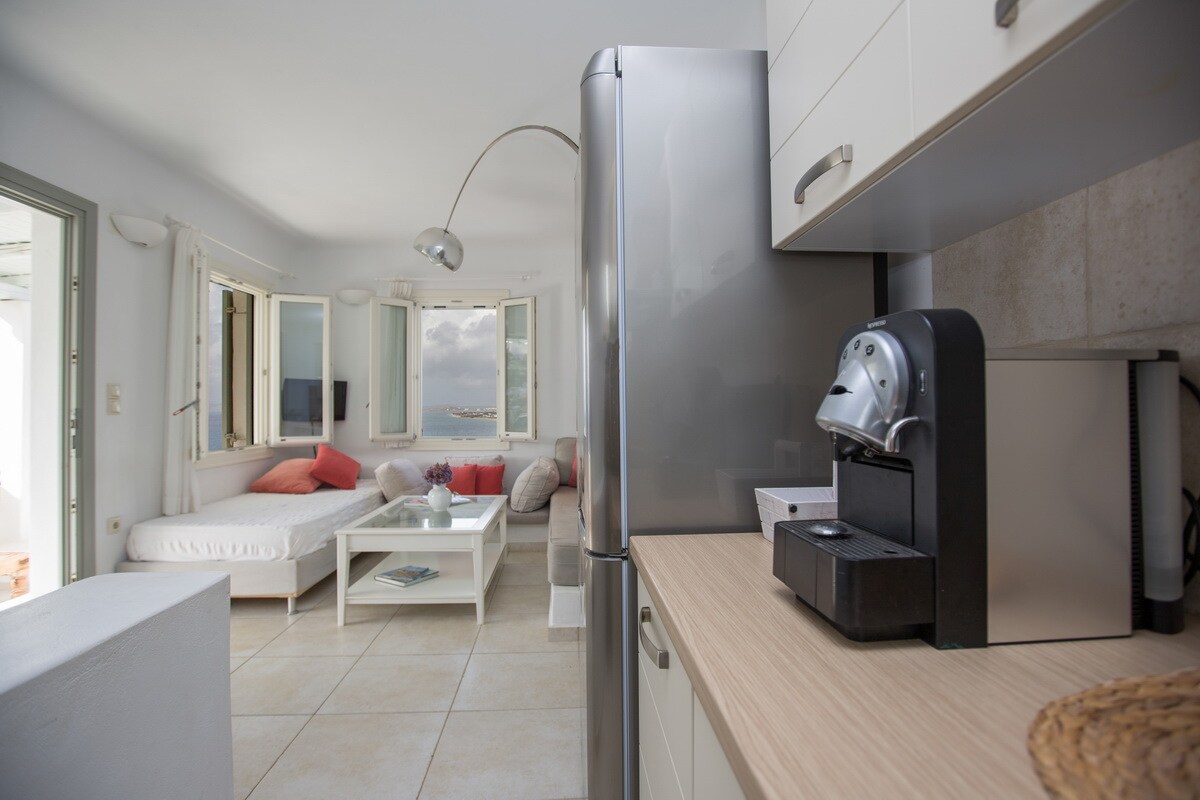 Բնակարանը գտնվում է Պարոիկիայի հենց կենտրոնում, հին շուկայի փողոցի ներսում, որը ձեզ հնարավորություն է տալիս մուտք գործել գրեթե ցանկացած վայր: Նավահանգիստը բնակարանից ընդամենը 4 -5 րոպե հեռավորության վրա է, այնպես որ ձեր մթերքների գնումների համար կան ավտոկայանատեղեր, ավտոկայանը, բազմաթիվ խանութներ, սուրճի խանութներ, բարեր, հացաբուլկեղենի խանութներ և սուպերմարկետներ: Վերջին, բայց ոչ պակաս, կարող եք այցելել երեք տարբեր լողափեր ՝ ընդամենը մի քանի րոպե քայլելով: