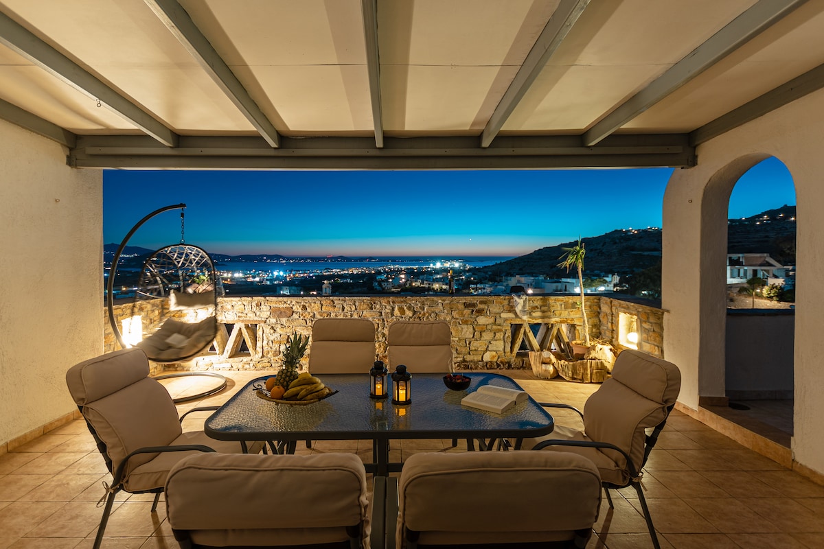 In, and at the same time, out of the center: only a three-minute driving distance between enjoying your privacy and mixing with the crowd! Built on the slope, just 1km uphill from Naxos Town, is a fully equipped stony house, with one of the greatest views on the island. Everything Cyclades is really about lies in your front yard! Ideal for families, couples, or friends who wish to stay close to the pleasures of Naxos Town but also away from the hustle and bustle of a busy tourist area.