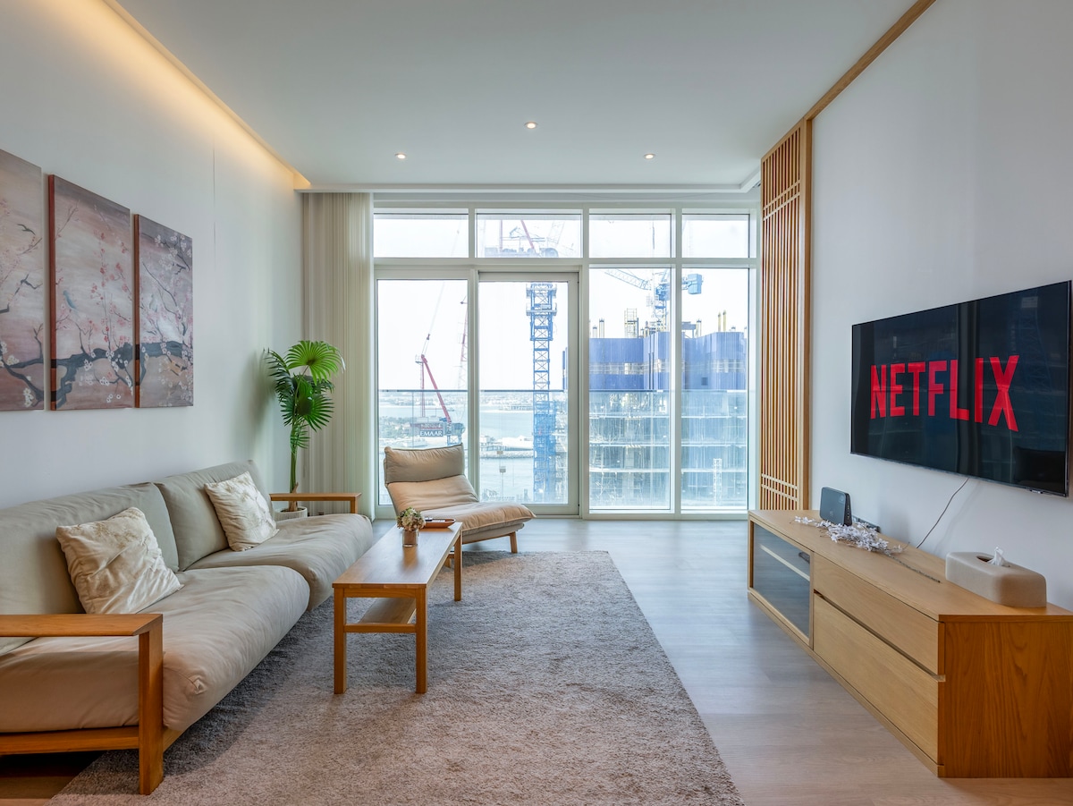 Լիարժեք տեսարան դեպի ծովը և նավահանգիստը |50+ հարկ 1 ննջասենյակ| Marina Gate