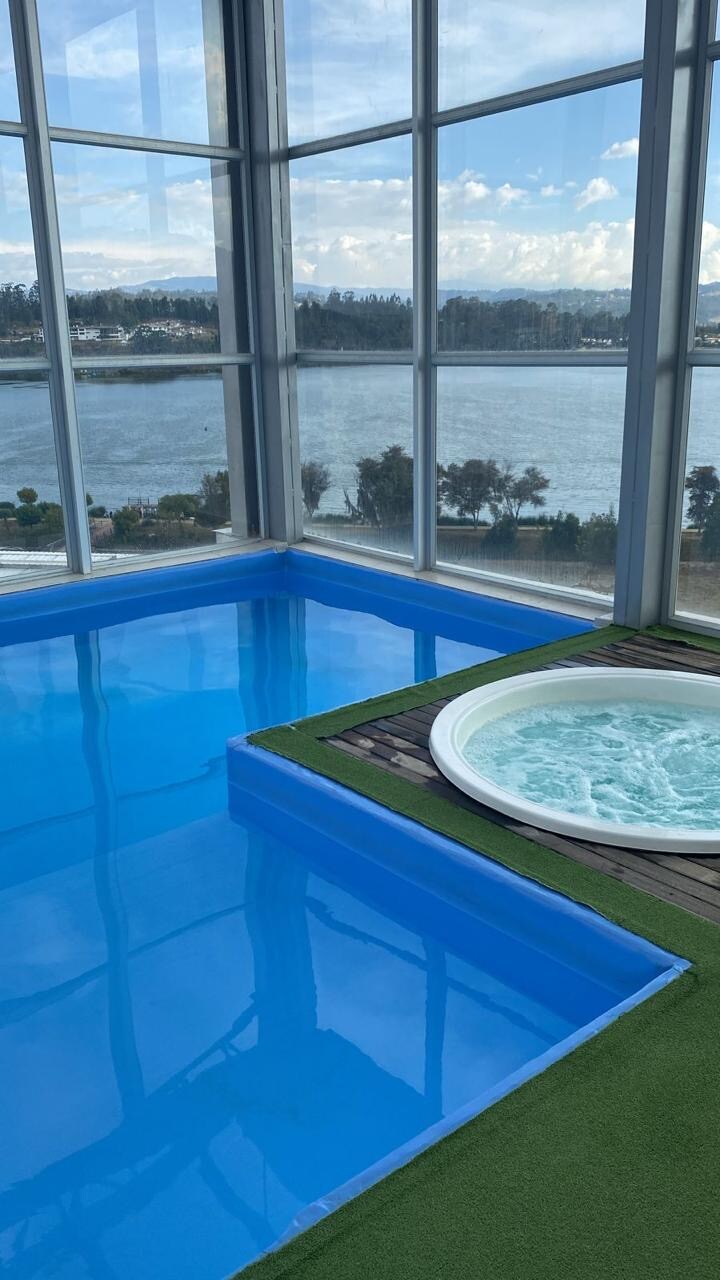 Exclusivo apartamento a orillas del lago Sochagota,podrás disfrutar de un espacio de lujo completamente nuevo,pensando en el bienestar y tranquilidad de nuestros huéspedes, con detalles locales y amenidades tecnológicas, como: cerradura y parlante inteligente , lámpara y televisor con asistente de voz, calefactor, y un bello balcón con vista lateral al lago. Encontrarás descanso, lujo y contacto con la naturaleza, todo en un solo lugar.