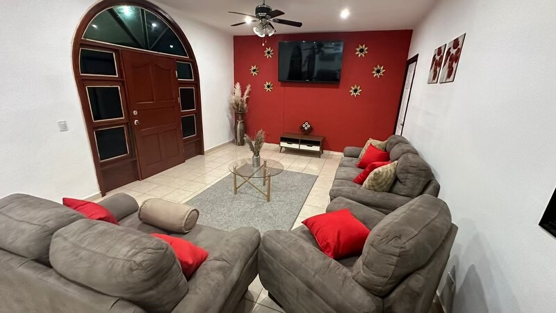 Apartamento María es moderno y acogedor, perfecto para quienes buscan comodidad, buena ubicación y un espacio para relajarse. Cuenta con aire acondicionado, una sala de cine ideal para disfrutar películas y series después de un día de actividades. Está ubicado cerca de centros comerciales, restaurantes y del corazón de Santa Ana, lo que facilita moverse por la ciudad sin complicaciones. Ideal para parejas, viajeros de descanso o trabajo que desean un lugar tranquilo, limpio y bien equipado.
