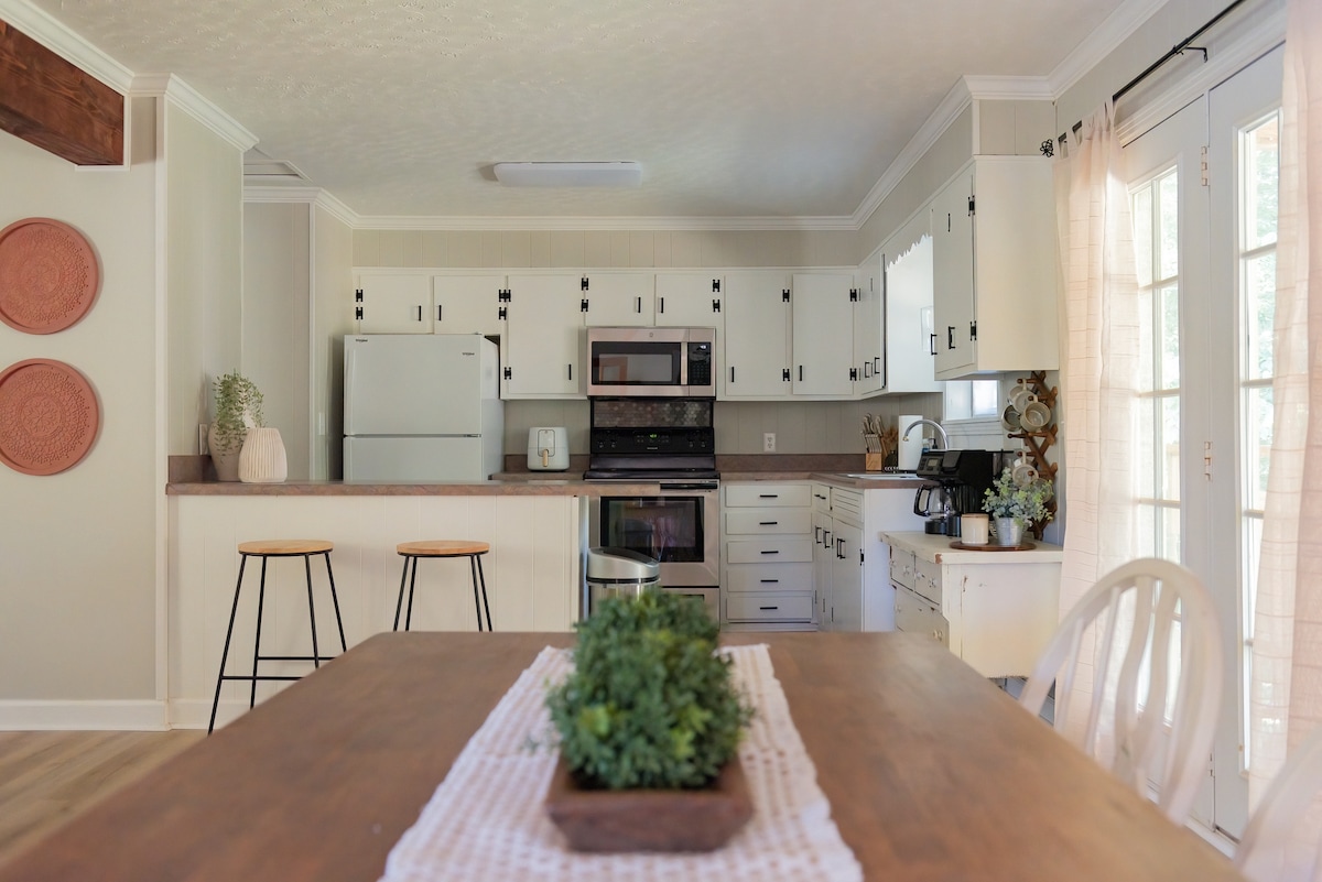 Nestled among towering trees, this beautifully remodeled 3-bedroom, 2-bath retreat redefines the mobile home experience—you’ll never believe you’re in one. Every detail has been updated with comfort and style in mind, creating a bright, welcoming space that feels more like a boutique cabin than a manufactured home. With a tranquil, woodland setting and all the essentials you need for a seamless stay. This is the perfect escape for anyone seeking comfort, privacy, and a touch of nature.
