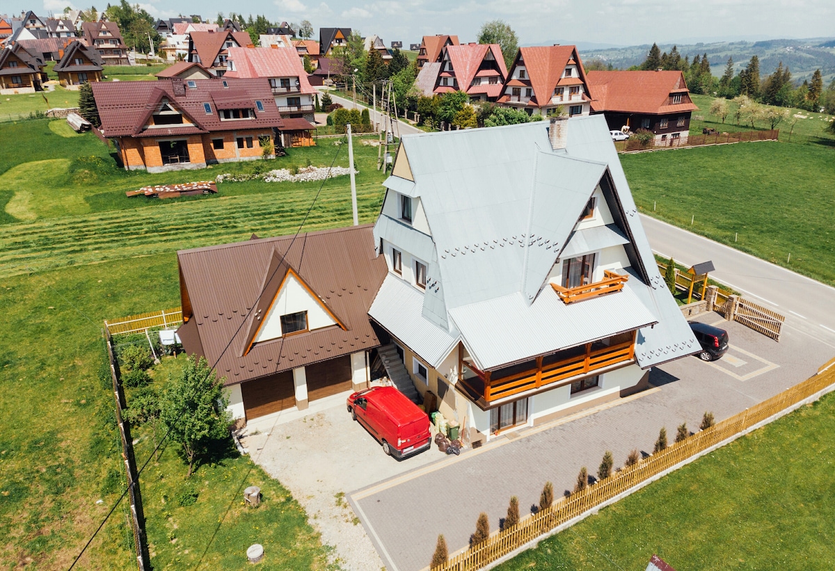 Apartment with beautiful view of Tatra Mountains, close to Zakopane, in Bustryk, one of the highest locations in Poland. The location allows you to avoid crowding so often found in the capital of the Tatra Mountains, while being a perfect starting point for any place in Podhale. Perfect for walking or cycling. Nearby there are numerous shops, slopes and taverns with regional food, music and a unique highlander atmosphere.