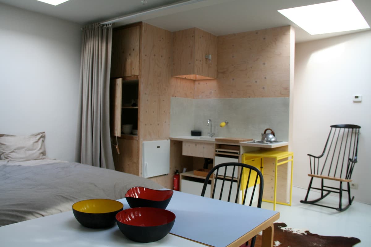 The studio is located in a quiet neighbourhood about 4 kilometers away from the city centre of Ghent. Check-in Monday - Friday: 18:00h check-out: 12:00h Check-in Saturday - Sunday: 14:00h check-out: 11:00h Day of check-in you can use the option to dropp luggage, parking space and bikes before 18:00h. Option available from 12:00h! We are both working as teachers fulltime during the week. We prepare and clean the rooms after the working hours. That's why our check-in starts in the evening.