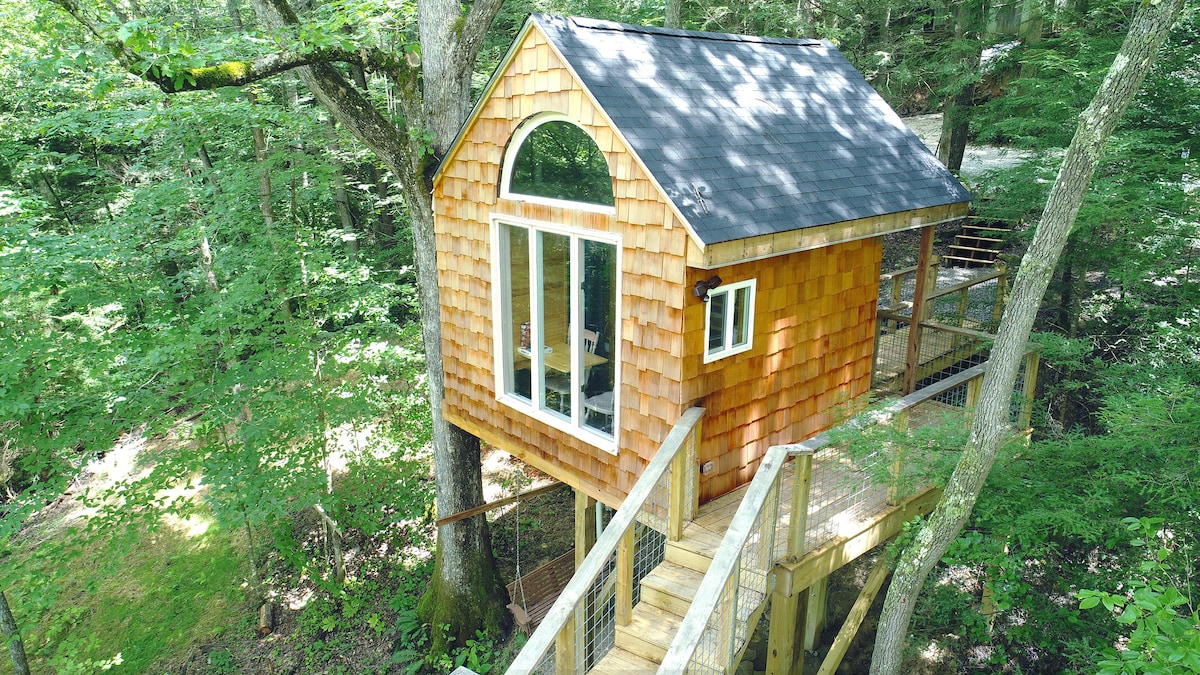 Հանգստացեք Ռեդ Ռիվեր կիրճում գտնվող հատուկ կառուցված ծառի տնակում։ 16 ֆուտ բարձրության վրա գտնվող այս հարմարավետ ծառի տնակն ունի քարե բացօթյա բուխարի և անտառի հիանալի տեսարաններ։ Անցեք գեղատեսիլ արահետներով մինչև Գրեյզ Արչ կամ հանգստացեք լուսաշղթաների տակ ձեր սիրելի մարդկանց հետ։ Հատուկ ստեղծված է զույգերի, ընտանիքների և արկածախնդիրների համար, որոնք ձգտում են ինչպես հարմարավետության, այնպես էլ բնության հետ կապի՝ ծառի գագաթին իսկական հանգիստ ապահովելու համար։ Փորձեք ծառերի գագաթներում քնելու կախարդանքը՝ շրջապատված Կենտուկիի ամենագեղեցիկ վայրի բնությամբ։