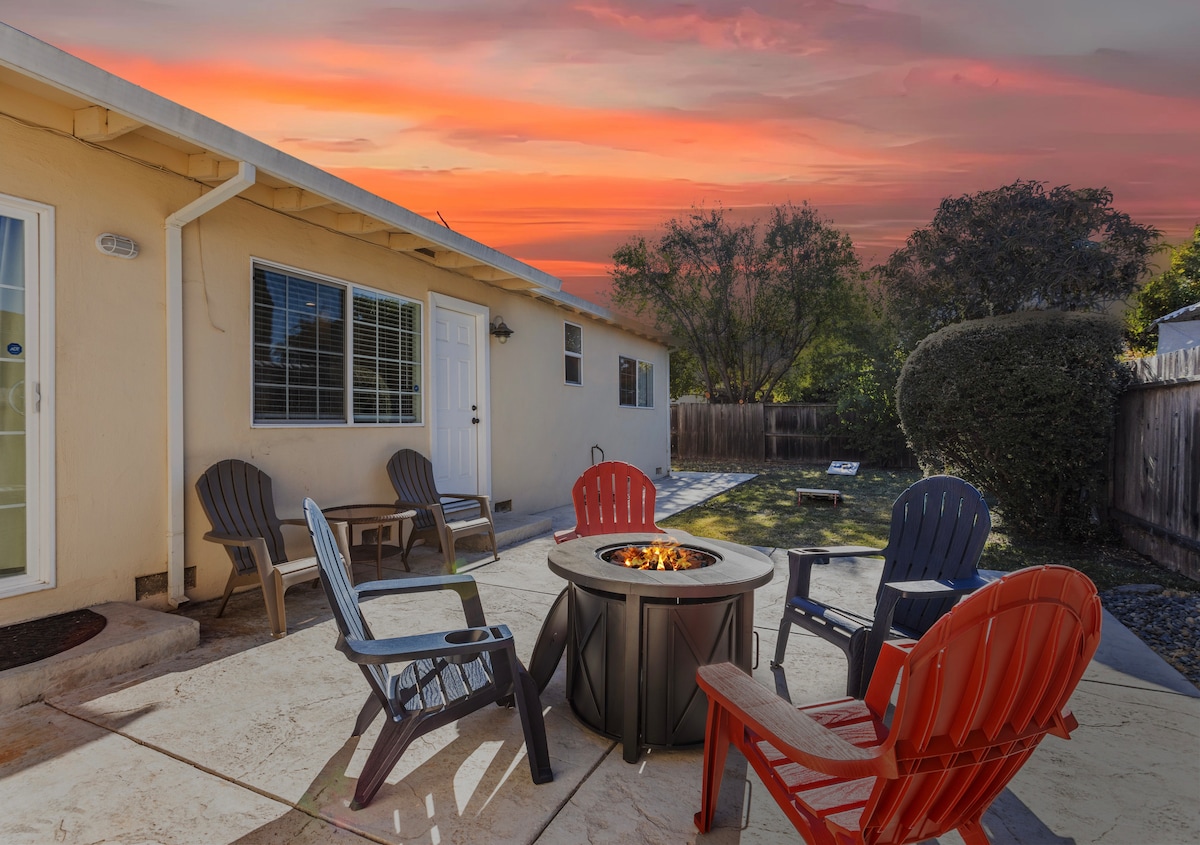 New! Mins to Stanford, Palo Alto, Meta w/Firepit
