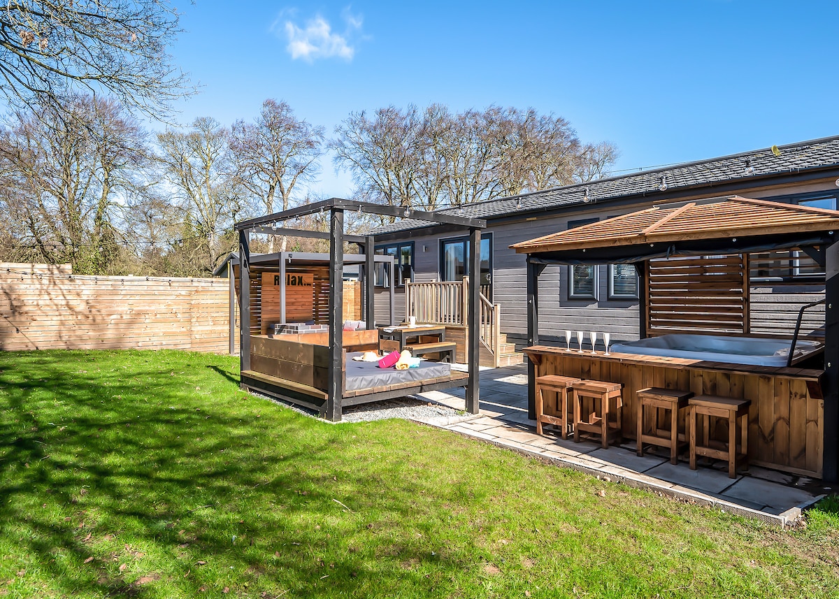 Pine Boutique Lodge with hot tub for couples & dog