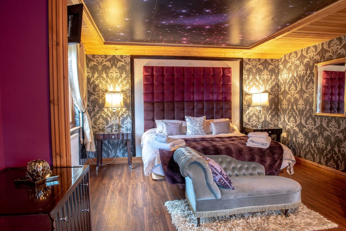 Newly decorated and furnished for 2021, you enter your private suite on the ground floor, walking straight into the new beautifully fitted kitchen complete with appliances, elegant dining area perfect for relaxed and cozy romantic candle lit dinners. Upstairs and you enter your warm living area with a small balcony with views of Baysgarth Park, furnished with sofa and matching chairs, soft lighting and a smart tv leading into the bedroom with it’s sumptuous antique french bed and en-suite.