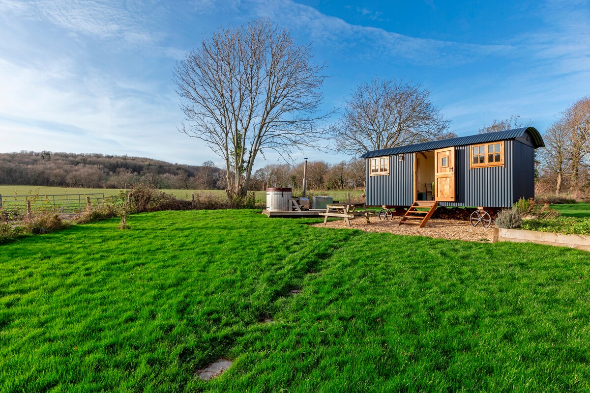 Luxury Shepherd’s Hut with idyllic views & hot tub