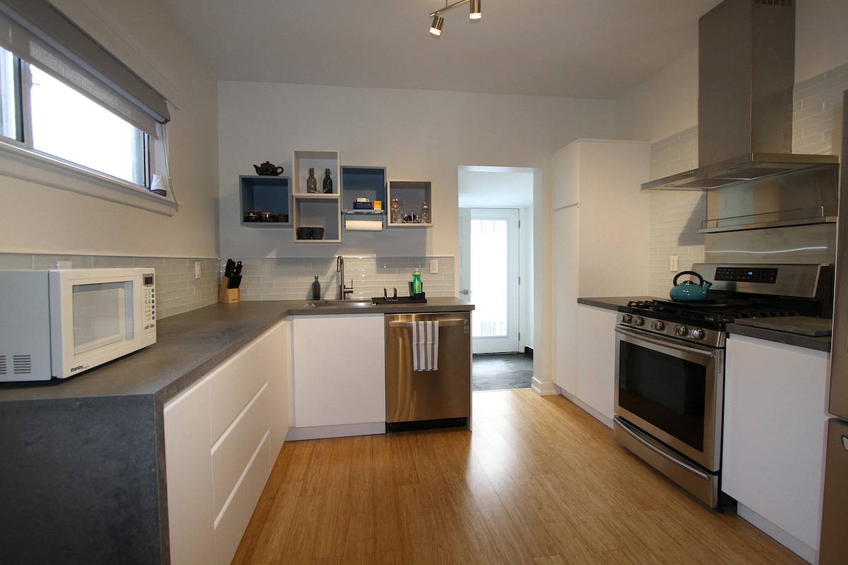 Փորձեք շքեղություն մեր տնային կենդանիների համար հարմար, 2 ննջասենյակով առանձնատանը Տորոնտոյի աշխույժ Դանֆորթ քաղաքում ։ Վայելեք լիովին կահավորված խոհանոցը, արագ Wi - Fi - ը, Netflix - ը, լվացքի մեքենան/չորանոցը և շքեղ դեկորը ։ Մեր հարմարավետ նկուղն անակնկալներ է ՝ բարձր առաստաղներով և առանձին մուտքով ։ Քայլեր հեռու Pape Subway - ից և Դանֆորթի լավագույն ռեստորաններից և փառատոներից: Կատարյալ է հարմարավետություն և հարմարավետություն փնտրող ընտանիքների և բիզնես ուղևորների համար ։ Ամրագրեք հիմա ՝ անմոռանալի հանգստի համար ։
