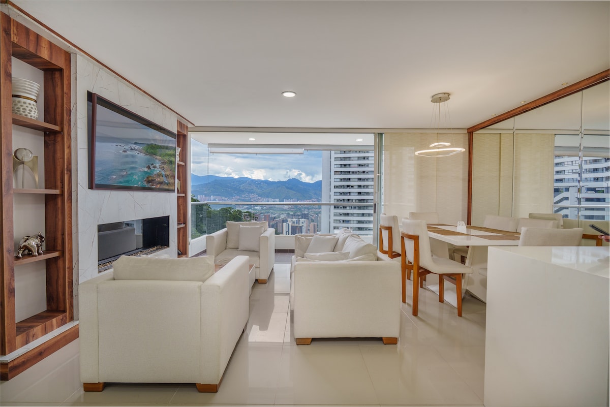 Պրեմիում դասի բնակարան Էլ Պոբլադոյի 21-րդ հարկում՝ մասնավոր ջակուզիով, հորիզոնի և լեռների համայնապատկերով։ Հանգստացեք պատշգամբում, վայելեք օդորակիչով հարմարավետությունը, աշխատեք գերարագ Wi-Fi-ի և հատուկ աշխատանքային տարածքի շնորհիվ և վայելեք 3 HD TV՝ Netflix-ով, լիովին կահավորված խոհանոցով, լվացքի մեքենայով/չորացնողով և թեյի/սուրճի պատրաստման անկյունով։ Օգտվեք սպա կենտրոնից, մարզասրահից, բաղնիքից, լողավազանից, ռեստորանից և սրճարանից։ Մի փոքր հեռու է Parques Lleras և Provenza առևտրի կենտրոնները՝ շքեղության, ոճի և հարմարավետության լավագույն վայրերը։