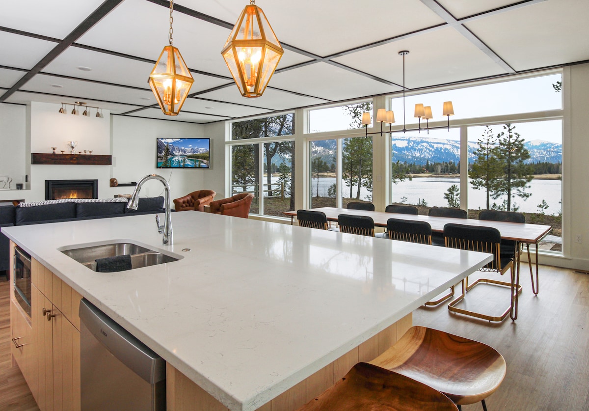 Luxury condo on the lake, newly remodeled with romantic setting, exceptional views and modern comforts. Large 65" streaming TV with YouTube TV and your accounts. Linear fireplace, radiant floor heating throughout, cozy and comfortable. Smart speaker controlled lighting, modern, euro style appliances, large soaking tub with endless hot water. View from your deck is incredible. Beachside pool in summer and lake swimming is the best. Fire and smores by the lake... Come and make memories. Ah, McCall