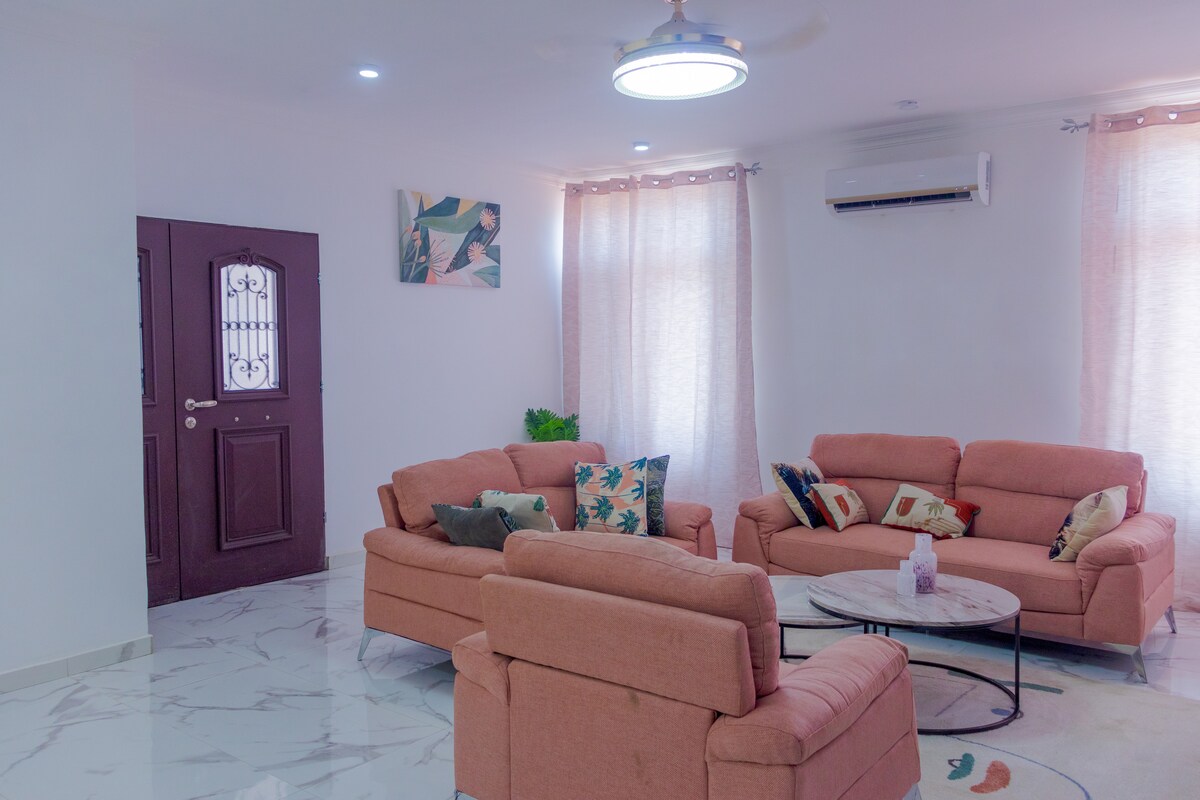 Բացահայտեք հարմարավետության և ոճի կատարյալ միաձուլումը այս ժամանակակից 3 սենյականոց բնակարանում, որը գտնվում է Կոտոկա միջազգային օդանավակայանից մի փոքր հեռու։ - Իդեալական է բիզնեսի կամ հանգստի համար - Այն ունի ընդարձակ ննջասենյակներ, լիովին կահավորված խոհանոց, հուսալի Wi - Fi և օդորակիչ ։ – Հյուրերը կարող են օգտվել անվտանգ կայանատեղիից, որտեղ անվտանգությունը ապահովվում է շուրջօրյա։ - Մոտակայքում կան առևտրի կենտրոններ, ռեստորաններ և աշխույժ գիշերային կյանք ՝ այս բնակարանը լավագույնն է Աքրան հենց ձեր շեմին: