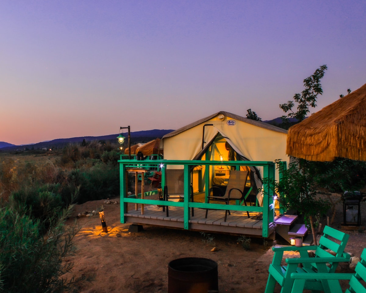 Վայելեք բնության գրկում գտնվող այս ռոմանտիկ վայրի հաճելի միջավայրը ։ Լճափնյա տեսարաններից երևում են Արևելյան Սիեռա լեռան տեսարաններն այս նորաոճ վրանային տնակում ։ Ընտրեք ձեր վրանը թողնել տանը ՝ մնալու այս բարձրակարգ կահավորված վրանային տնակում ։ Լրացրեք արևային էներգիայով, փոքր օդափոխիչով, պրոպանային տարածքի տաքացուցիչով, մանղալով, պալապայի հովանոցով, կրակակետով և բացօթյա պիկնիկի սեղանով, որտեղ կվայելեք գլեմփինգի բացառիկ փորձառություն ։