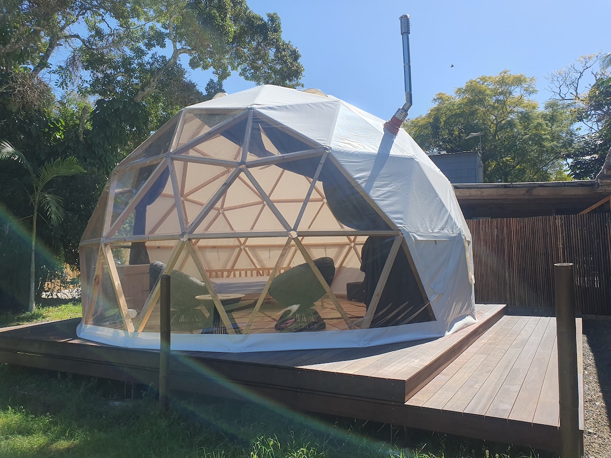 Թող Մանգոդալայի գեոդեզիական գմբեթը ձեզ տանի դեպի կախարդական օազիս Սկարբորոյում: Բրիսբենից 30 րոպե, օդանավակայանից 25 րոպե և Նյուպորտ Մարինայից 3 րոպե ՝ Մորթոն կղզի մեկօրյա ուղևորություն ամրագրելու համար: Էկո մտածելակերպով վերամշակված փայտե կառուցվածք, բամբակյա կտավի արտաքին և բնական մանրաթելային սպիտակեղեն ։ Հանգստացեք և լիցքաթափվեք ձեր առանձին մայրի ջակուզիում, վայելեք հանգիստ բացօթյա այգիներ և ժամանցային տարածք ՝ խորովածով և կրակարանով բույն է դրել մի հոյակապ Մանգո ծառի տակ: Խոհանոց, լոգասենյակ և լաունջ գմբեթի ներսում ։
