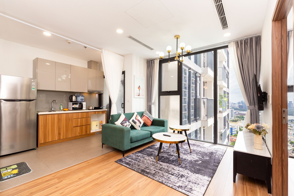 Luxury 5* The Opera Residence Corner Apartment by ChiHome - River View Bason District 1, The LandMark 81, The Galleria, The Mett Office, District 2 Sala Thiso Mall. - Tháp B, Scala, Level 1x căn số 10 - Diện tích: 70m2 (căn góc) - Bao gồm 2 phòng ngủ, 2WC, thoải mái ở từ 2-4 người. - Tivi thông minh 65inch với Netflix và YouTube - Sofa, ghế Armchair, bàn trà. - Bàn ăn 4 ghế - Đồ dùng nấu ăn đầy đủ - Internet không dây tốc độ cao có sẵn - Điều hòa nhiệt độ cho cả nhà - Ra vào tòa nhà 24/7