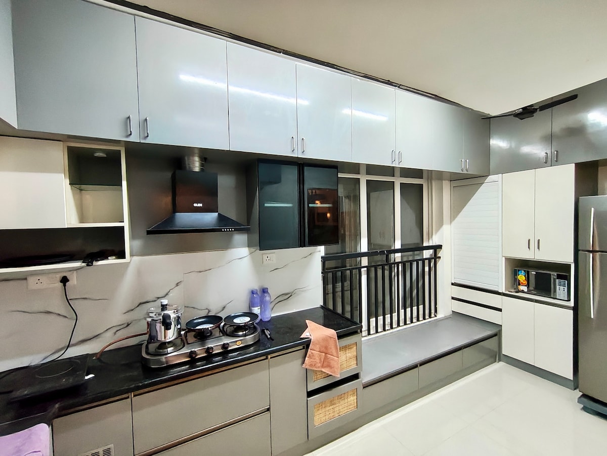 Brand NEW European themed 1BHK Home in 12th floor🌍 Couple friendly and Perfect place for celebrating Anniversary 🎥 A screen projector for a cinema-style viewing experience in the Bedroom. ▶️Free Netflix and other OTTs. 👫 perfect for weekdays getaways 🌇 A west-facing balcony with stunning sunset views (perfect for your evening coffee!) 🐾 Pet-friendly & family-friendly setup 🌬️ Fully Air conditioned property