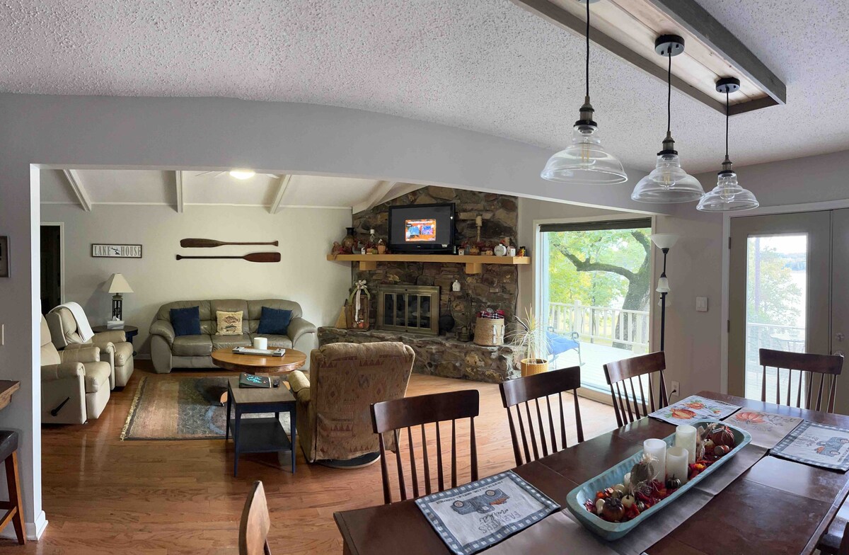 Այս հարմարավետ 3 ննջասենյակով 2 լոգասենյակով տունը + լոֆթը գտնվում է Հիգդենի Գրերի լաստանավային լճի ջրի վրա ։ Դեպի ջուրը տանող ճանապարհն ունի գեղեցիկ տեսարան և հիանալի վայր է լճում ցատկելու կամ ձկնորսության գիծ իջնելու համար: Հյուրերի համար նախատեսված ջրային սարքավորումները ներառում են 2 կայակ ՝ թիավարությամբ և այլն ։ Այս լիճն ունի 2 մեծ տուն ՝ նոր հիբրիդային ներքնակներով: Երկտեղանի սենյակն ունի նոր հիշողության փրփրապլաստե ներքնակ, որը դուրս է գալիս թագավոր պատրաստելու համար ։ Լոֆթն ունի թագուհու ներքնակ ։ Էլեկտրական բուխարի և թարմացված խոհանոց ։
