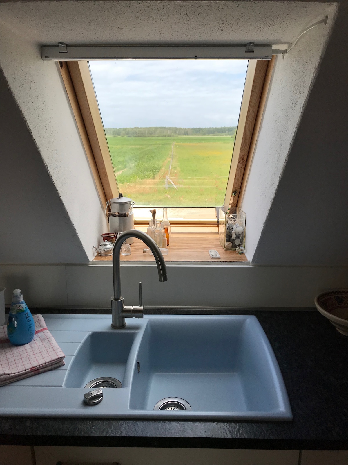 Surrounded only by meadows and fields, hidden behind the village pond, lies the small manor estate with its main house and old stables. For the past five years, we’ve been carefully restoring it, breathing new life into the 1899 estate. On the upper floor of the manor house – a brick building typical for the region – a spacious, light-filled 114 sqm apartment is waiting for you. The old beams are visible once again. The interior is simple and doesn’t distract.