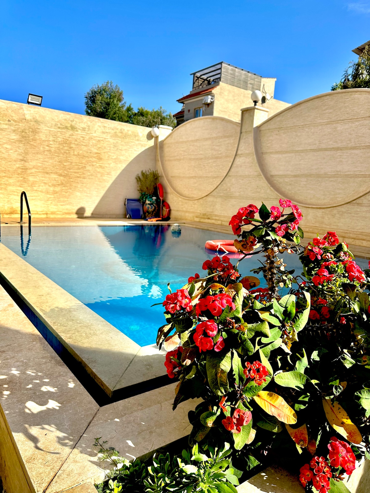 Ընտանիքների և հիջաբի կանանց համար հարմար մասնավոր վայր ՝ երկու մեծ լողավազաններով, 2,5 մ խորությամբ, մյուսը հարմար է և անվտանգ երեխաների համար: Շքեղ մեծ այգի: Բարձր և ծանր Գաղտնիության ծառերը լիովին թույլ չեն տալիս որևէ մեկին տեսնել իմ հյուրերին պարտեզում կամ լողավազաններում գտնվելիս: Փակ ծածկված կայանատեղին իմ հյուրերի մեքենաները պահում է անվտանգ և արևից հեռու: Ես երաշխավորում եմ մաքրման զարմանալի ստանդարտ իմ հյուրերի համար ։ Երկարաժամկետ վարձակալության համար ես նաև երաշխավորում եմ այգու և լողավազանների շարունակական սպասարկում ։