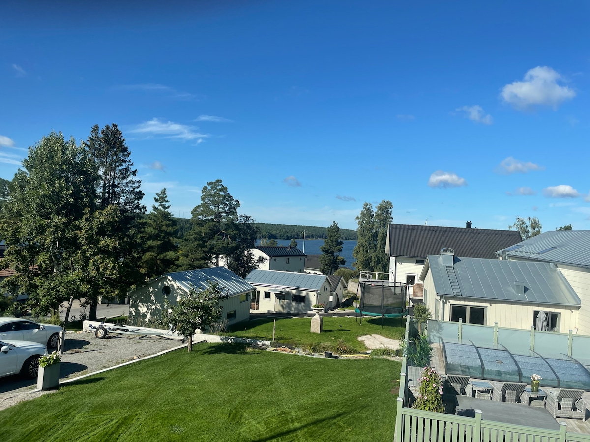 Modernt nytt gästhus beläget i strålande söderläge alldeles vid strandkanten. Huset har fullt utrustat kök, bra wifi, ett badrum med tvättmaskin/torktumlare, sovrum samt loft. I direkt anslutning finns två terrasser och framför huset en gräsmatta varifrån man kan doppa fötterna i Mälaren. Parkering finns och det är 250 m till busshållplatsen. Boendet är sista huset på en lugn återvändsgata. Perfekt utgångspunkt för utflyktsmål som Birka , Drottningsholm (10 km), Stockholm City (21 km)
