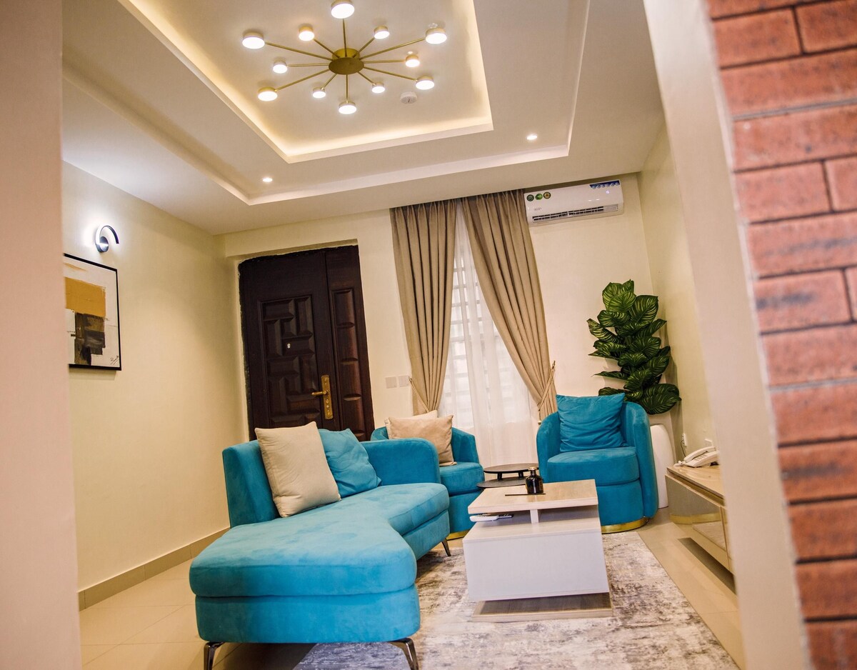 Experience stylish living at our stunning apartment in a serene neighborhood. Boasting elegant decor, spacious living area, a peaceful ambience, spacious bedrooms and a fully equipped kitchen. Perfect for short or long stays, it combines the warmth of home with the sophistication of premium hospitality.