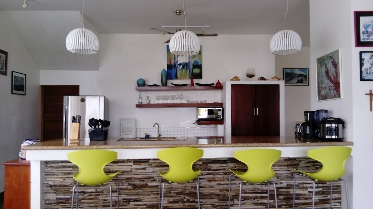 Casa Cielo Pelican Eyes will literally make you feel in heaven. Let yourself enjoy the stunning sunsets, the amazing view of San Juan del Sur bay, and every detail in this spacious villa. Your stay in Casa Cielo will be enchanted by the surrounding nature and romantic feeling of the house. The villa has 2 en suite bedrooms, additional morphy bed, guest bathroom, balcony and terrace with bbq. 24/7 security, parking space and it is right in town.