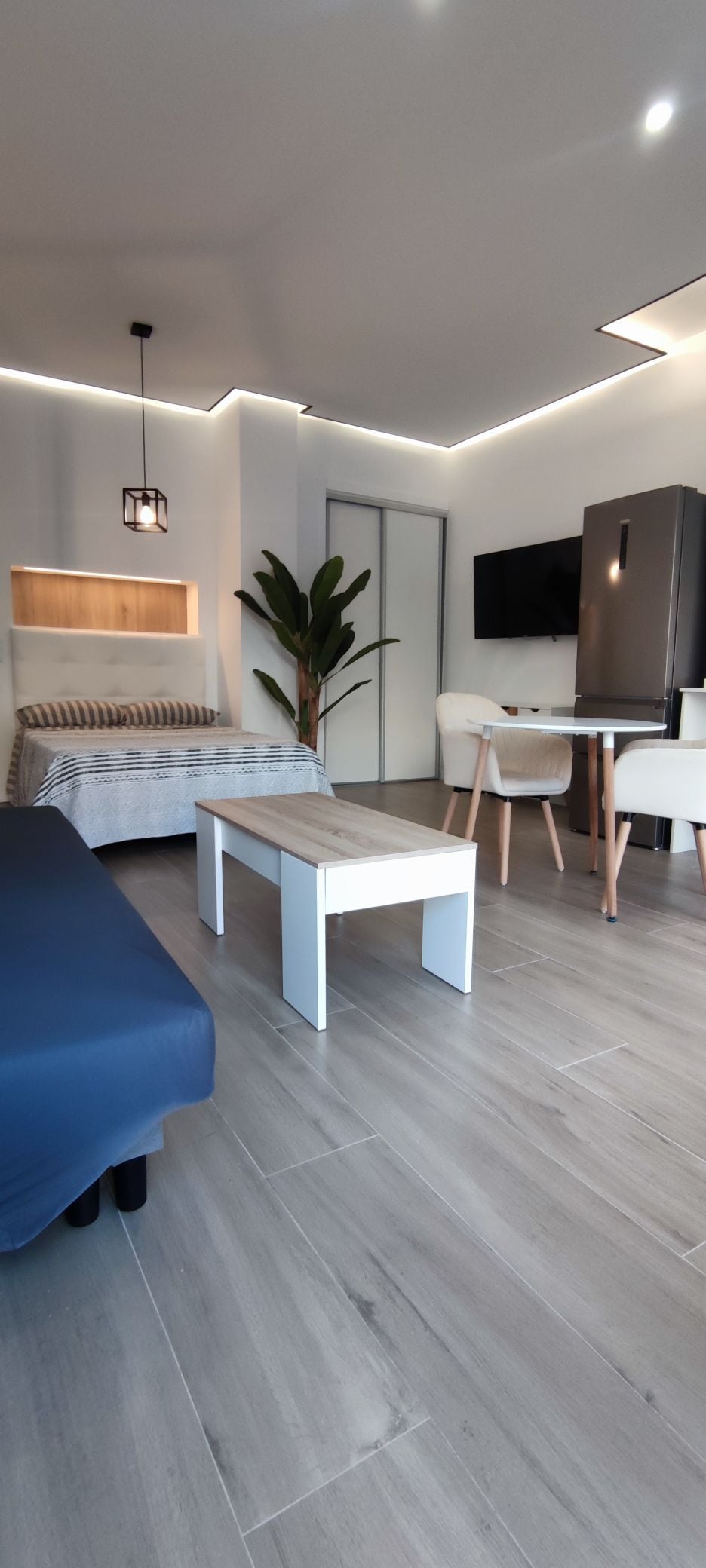 Un loft confortable nuevo con mucha luz natural con dos balcones con buenas vistas al exterior , cuenta con una habitación con una cama de matrimonio y un sofá cama Justo en frente de la cama que también se convierte en cama de matrimonio, climatizado, televisión , calentador, plancha, perchas, electrodomésticos : cafetera, microonda, lavadora, horno , utensilio de cocina; en el cuarto de baño encontraras toallas, gel de ducha, champú, jabón de manos y secador de pelo.