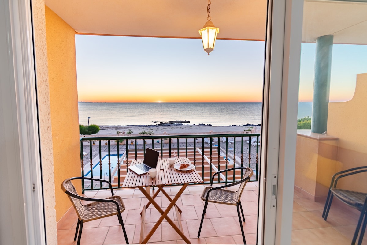 Ողջույն, ես Núria - ն եմ ՝ ձեր տանտերը ։ 😊 Հրավիրում եմ ձեզ անմոռանալի հանգիստ վայելելու Էլ Կալոնում գտնվող այս հարմարավետ բնակարանում ։ 🤗 Այստեղ դուք կլինեք բառացիորեն լողափում և շրջապատված կլինեք հանգստությամբ և բնությամբ ։ 🏜️ 4 հոգու համար նախատեսված տարողունակությամբ այն իդեալական բնակարան է ինչպես զույգերի, այնպես էլ ընտանիքների կամ ընկերների խմբերի համար, որոնք ցանկանում են հանգստանալ և վայելել ծովը: 🌊 Ամենաշատն ընդգծում եմ օվկիանոսի զարմանահրաշ տեսարանը ։ Կարող եք հիանալ գունագեղ երկինքը ներկող արևածագերով ։ 🌅👀