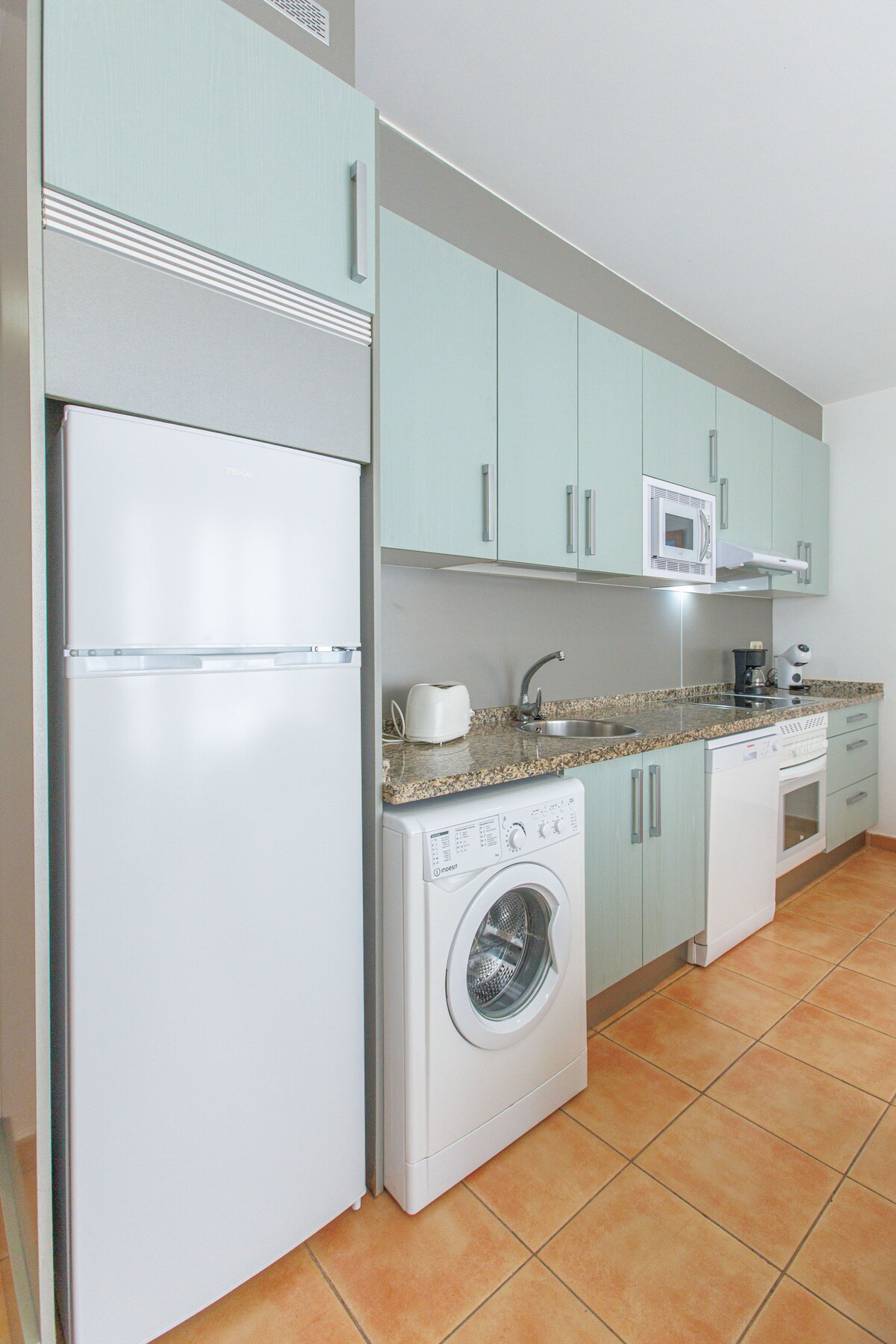 This spacious apartment is located in a quiet residential complex, just 12 min walking from the center of Corralejo. The apartment has a big terrace, perfect for breakfast outdoors, or spend a romantic sunset with glass of wine. It has a privileged location, with cafes and restaurants around. Two big supermarkets in the neighborhood (1,1km). The apartment has an alarm installed. Coffee, sugar, olive oil, spices and a multitude of items for personal hygiene are also available.