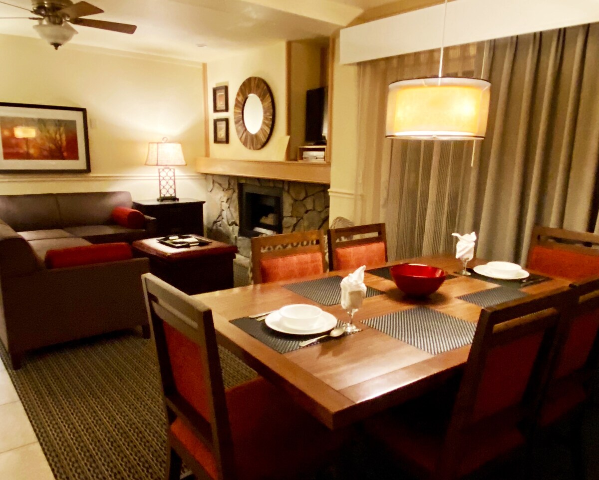 From July 13 to October 2, 2025 there is no resort fee. (exception September 12, 2025). We offer curated hotel quality units with the convenience of a private home and amenities of a world-class resort. • At the base of the Heavenly Mountain with access to skiing via Skier Express • Fireplace and full kitchen. • Shuttle to Downtown + Shuttle to the Slopes (during Ski season). • FREE PARKING + WIFI • Heated Pool, Hot Tub, GYM and game room • Accommodate up to 6 people