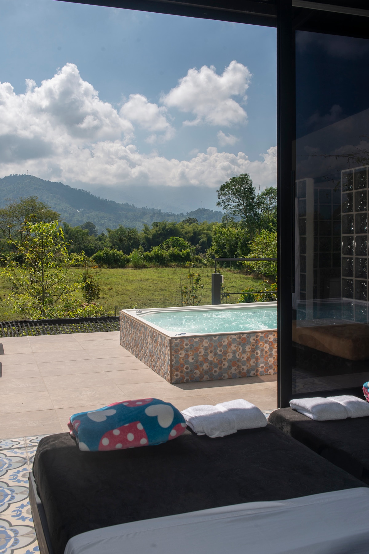 Escápate a una cabaña romántica con jacuzzi privado en el corazón del Quindío Bienvenido a nuestra cabaña privada dentro de una reserva natural, a pocos minutos de Armenia y Salento. Aquí te esperan amaneceres con canto de aves, un jacuzzi al aire libre entre árboles, y noches estrelladas. Lo que ofrece la cabaña: - Jacuzzi privado - Cama doble con sábanas premium - Cocina y barril de asados - Desayuno incluido donde te damos los ingredientes para que lo prepares a tu gusto.