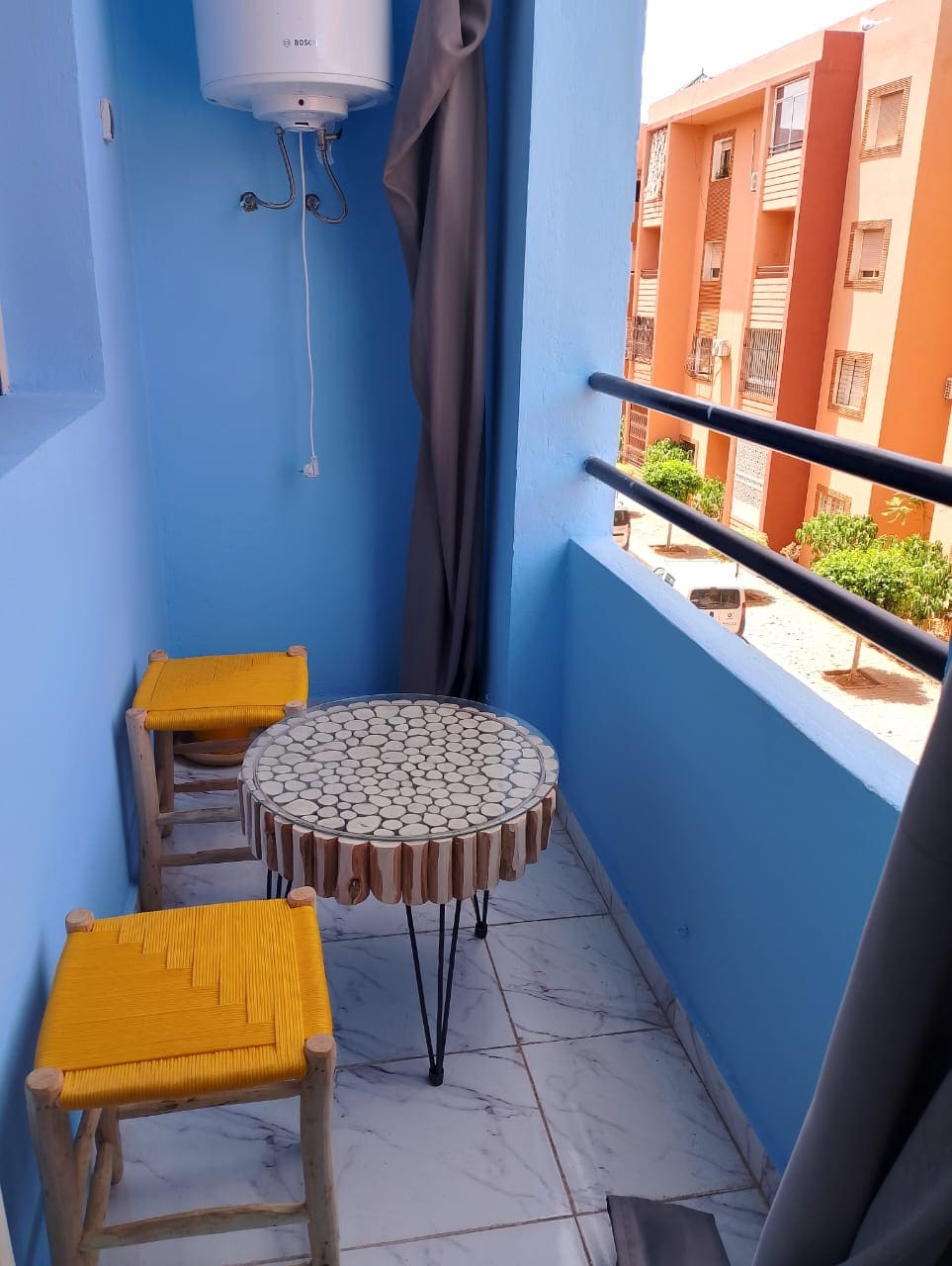 شقة للكراء اليومي بمدينة مراكش، تقع في الطابق الثالث داخل إقامة مغلقة وآمنة توفر جميع وسائل الراحة والرفاهية. تتكون من غرفة نوم مريحة وصالون أنيق ومطبخ مجهز وحمام عصري، بالإضافة إلى مكيفين لضمان جو مثالي صيفاً وشتاءً. الإقامة تتوفر على أربع مسابح مما تمنحك لحظات استرخاء رائعة، مما يجعلها الخيار المثالي لقضاء عطلة مميزة