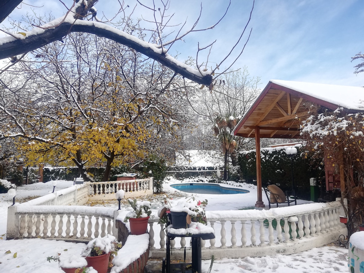Վայելեք հարմարավետ, լուսավոր և բնությամբ շրջապատված միջավայր։ Տեղավորում է մինչև 4 հյուր, այն ունի ՝ 2 ննջասենյակ՝ երկտեղանի մահճակալով և առանձին լոգասենյակով, և մեկ այլ ննջասենյակ՝ խցիկով Լրացուցիչ թախտ Կահավորված խոհանոց 2 լոգասենյակ Բուխարի Մասնավոր լողավազանն ակտիվացված է Quincho՝ իդեալական խորովածի համար Մերձատար ճանապարհ տրանսպորտային միջոցների համար Մինիմարկետ ՝ ոտքով հեռավորության վրա Հեշտությամբ հարմար է ։ Տունը գտնվում է հանգստի, մեկուսացման և վերականգնման համար կատարյալ բնական միջավայրում։ Սպասում ենք անմոռանալի փորձառության ։