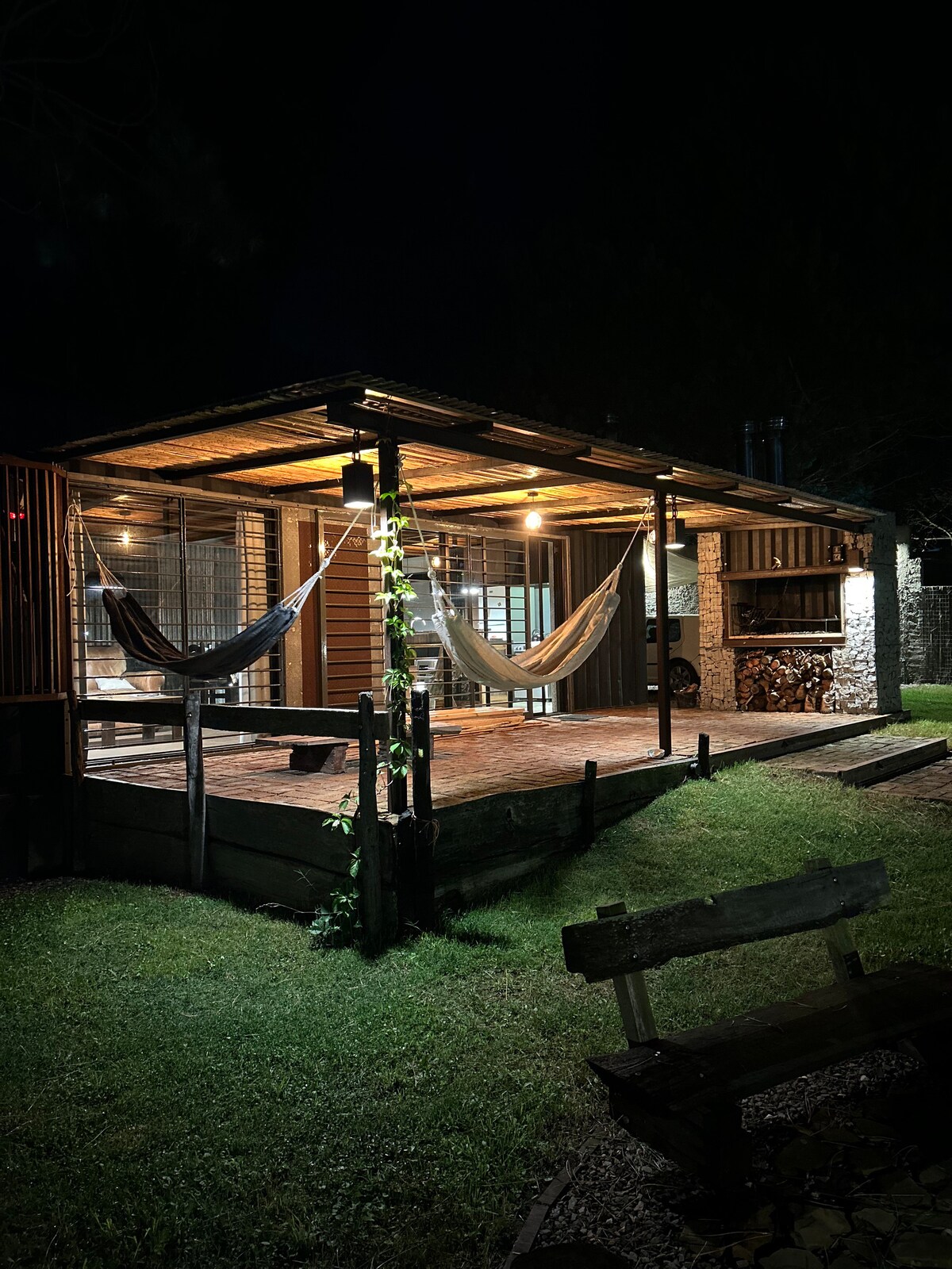 Փոքր և հարմարավետ փայտից պատրաստված ՝ բույսերով լի կանաչ առաստաղով, ամռանը թարմ է, իսկ ձմռանը ՝ տաք ։ Այն ունի ննջասենյակ ՝ օդորակիչով և խոհանոցով, որն ընկղմված է գեղեցիկ այգու մեջ, որը գտնվում է անտառում ՝ ծովի ափին ։ Տարածքը գյուղական է և պարզ ՝ նրանց համար, ովքեր ձգտում են անջատվել և վայելել բնությունը ։ Մենք առաջարկում ենք ավելի քան մեկ փորձառություն ՝ նորացման վերալիցքավորման հնարավորություն ։ Այն Էսսացիո Ալալուզի մի մասն է, որն ինտեգրում է բուժական և գեղարվեստական միջոցառումներին ։