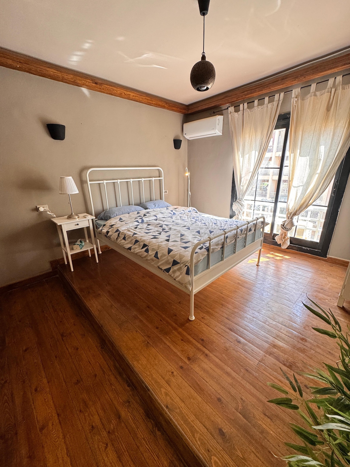 Placed in one of the best locations in B7 area - Madinaty, New Cairo; the apartment offers excellent access to the nearby amenities and services (i.e. coffee, pharmacy, mall, shops, sports club etc..) and is a walking distance to the bus station and Southwest mall. + The apartment is entirely wooden-floored, which maintains a warm and cosy feeling in winter, and cool weather in the summertime, with unique hand-made wooden doors.