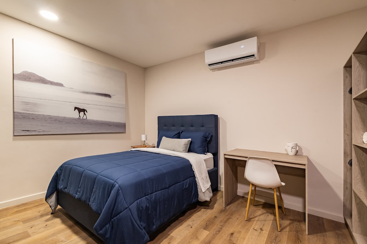 Հարմարավետ ԱՌԱՆՁԻՆ մինի բնակարան ՝ 1 մահճակալով, որը գտնվում է Սան Սալվադորի կենտրոնական, մասնավոր, հանգիստ և անվտանգ բնակելի տարածքում ։ Սեփական լոգասենյակ, սենյակի ճոպանուղի, Wi - Fi, Սմարթ հեռուստացույց Netflix - ով, պահարան, սառնարան, 1 բացօթյա կայանատեղի և այլն ։ Տարածքը գտնվում է Cuscatlán մարզադաշտի մոտ և 10 րոպե առևտրի կենտրոններից, ինչպիսիք են La Gran Vía - ն, Multiplaza - ն, El Salvador - ը, և 5 րոպե Starbucks - ից, ռեստորաններից, դեղատներից և այլն: