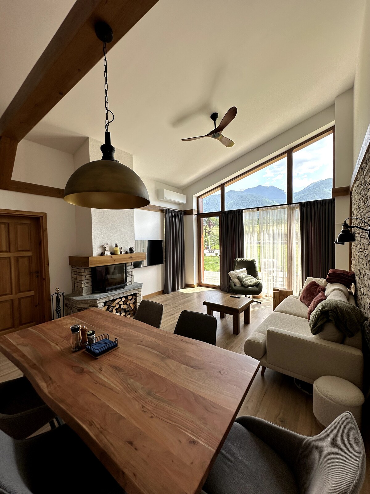 Ընտանիքների համար հարմար, գեղեցիկ փողոցում թաքնված մեր շալեն գոնդոլայից ընդամենը հինգ րոպե քայլելու հեռավորության վրա է, իսկ գյուղի ռեստորաններից ու բարերից՝ մի քայլ հեռու։ Մենք այս վայրը կառուցել ենք մեկ մտքով՝ ստեղծել մի վայր, որտեղ իսկապես կարող եք հանգստանալ։ Այնպիսի վայր, որտեղ առավոտյան կարող եք քայլել դեպի լեռնադահլիճները, երեկոյան վերադառնալ ընթրությունից և միևնույն ժամանակ զգալ, որ ամեն ինչից հեռու եք։ Մեր նպատակն էր առաջարկել հանգիստ և հարմարավետ հանգիստ առօրյայից՝ ամբողջ շալեն ձեր տրամադրության տակ լինելու դեպքում։