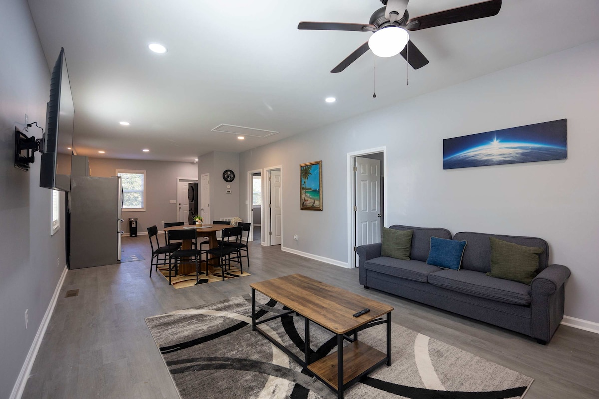 Ջակուզի, խարույկատեղի մթնոլորտ և քաղաքի կենտրոն հասնելու հնարավորություն՝ այս հարմարավետ, 2 ննջասենյակով հանգստի վայրը ստեղծված է հանգստանալու և մտերիմների հետ ժամանակ անցկացնելու համար։ Հանգստացեք 8 անձ համար նախատեսված սպա սրահում, գնացեք տեղական ռեստորաններ և գարեջրատներ կամ վայելեք խաղային երեկո՝ կաբրիոլետի ձև ունեցող բիլիարդի սեղանի շուրջ։ • 8 անձ համար նախատեսված մեծ ջակուզի/սպա • Բացօթյա նստատեղեր և հատուկ բուխարի • Հեշտ է քայլել դեպի կենտրոն (ռեստորաններ, գարեջրատներ և խանութներ) • Լողավազանի/սեղանի վերածվող բամպեր •Սմարթ հեռուստացույցներ յուրաքանչյուր սենյակում • Լիովին կահավորված խոհանոց և կոկտեյլների բաժակներ