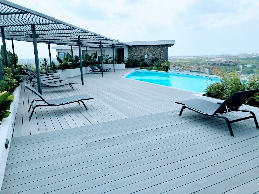 Luxempire Homes - ստուդիական բնակարան ՝ տանիքի վերին լողավազանով, թենիսով, մարզասրահով և հավանա կինոթատրոնով Պլյուշ ստուդիայի բնակարան Աքրայի սրտում. Ապրելակերպից բացի ։ Զգացեք շքեղության, հարմարավետության և ժամանակակից կյանքի կատարյալ համադրություն Գանայի Աքրա քաղաքի սրտում գտնվող այս բարձրակարգ ստուդիական բնակարանում ։ Գտնվելով ապահով խառը օգտագործման բնակելի համալիրում ՝ այս նրբաճաշակ բնակարանն առաջարկում է անզուգական հարմարություններ և հեշտ մուտք դեպի հիմնական տեսարժան վայրեր ՝ այն իդեալական դարձնելով հանգստի, աշխատանքային կամ երկարաժամկետ այցերի համար ։