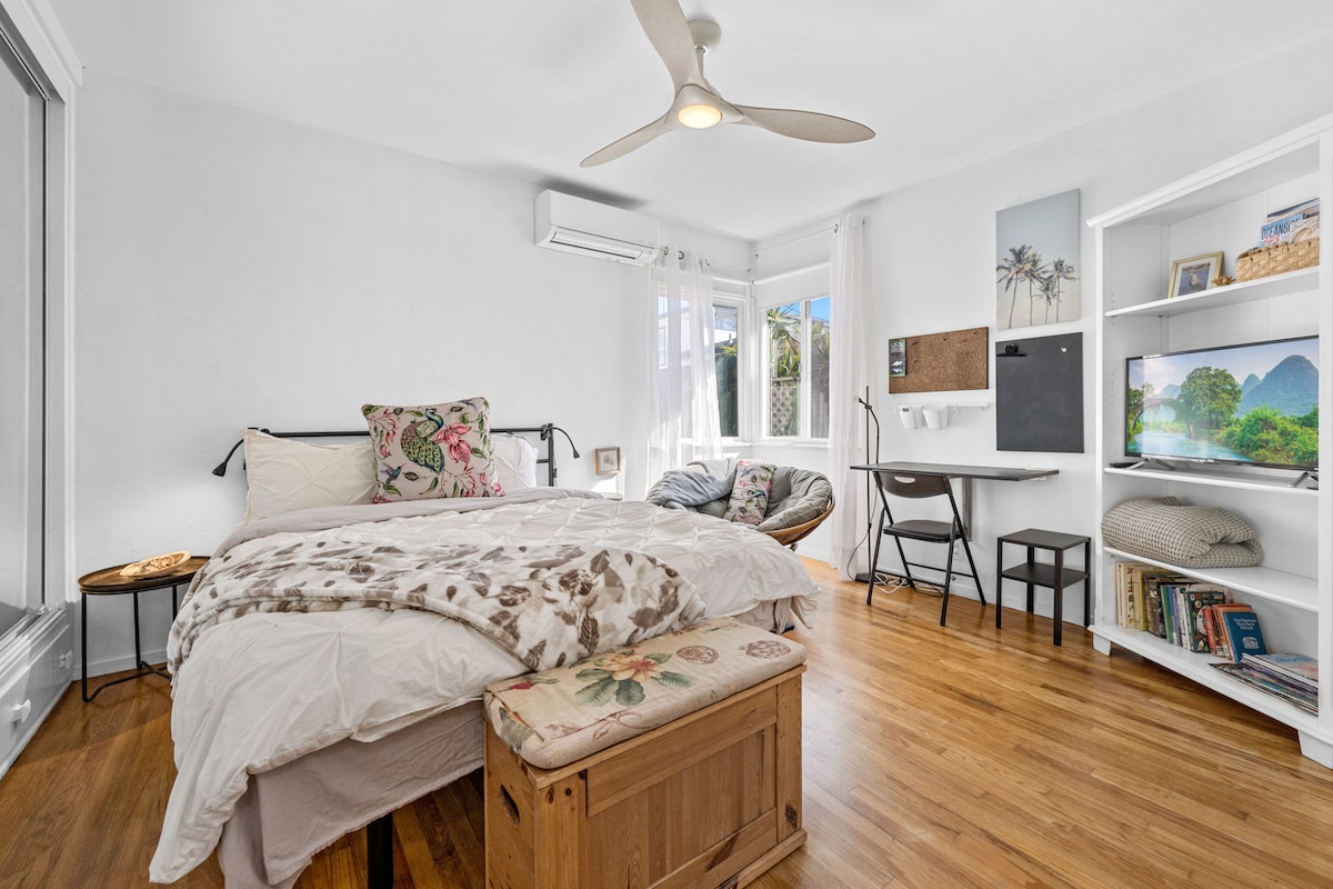Your safety and comfort is my priority! All surfaces are disinfected between stays. Heart of Leucadia: bungalow with unique personality, high ceiling, extra large windows face into the garden. Private entrance. The “Lair" is perfect for couples, solo adventurers, and business travelers. It is not intended for children. Walk 2 1/2 blocks to the beach, and numerous favorite restaurants and shops within blocks. You can LEAVE YOUR CAR at home and still have an amazing vacation!