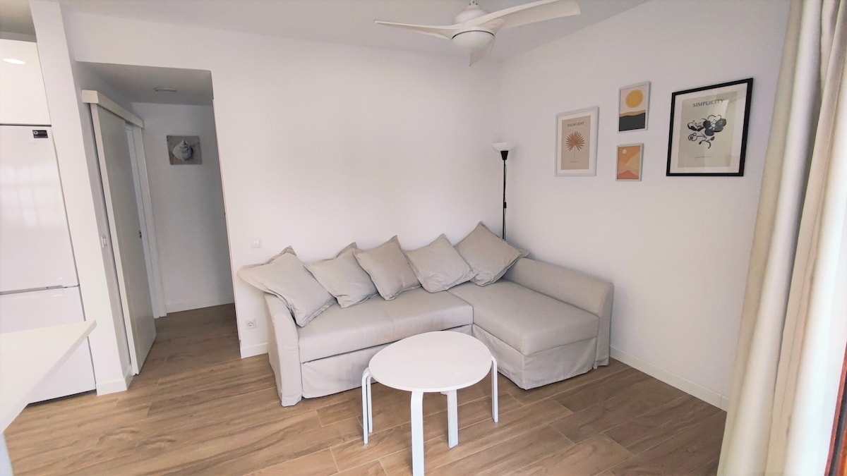 Spacious top-floor apartment on the 8th floor with extra light, privacy and open views – ideal for up to 3 guests. Perfect for longer stays, remote work or relaxed holidays in Maspalomas. Two single beds (convertible to double), sofa bed and workspace. Fully equipped kitchen, Smart TV, Netflix, fast WiFi. Washing machine included. Quiet yet well connected, just a short walk from Yumbo Centre, restaurants, supermarkets and transport.