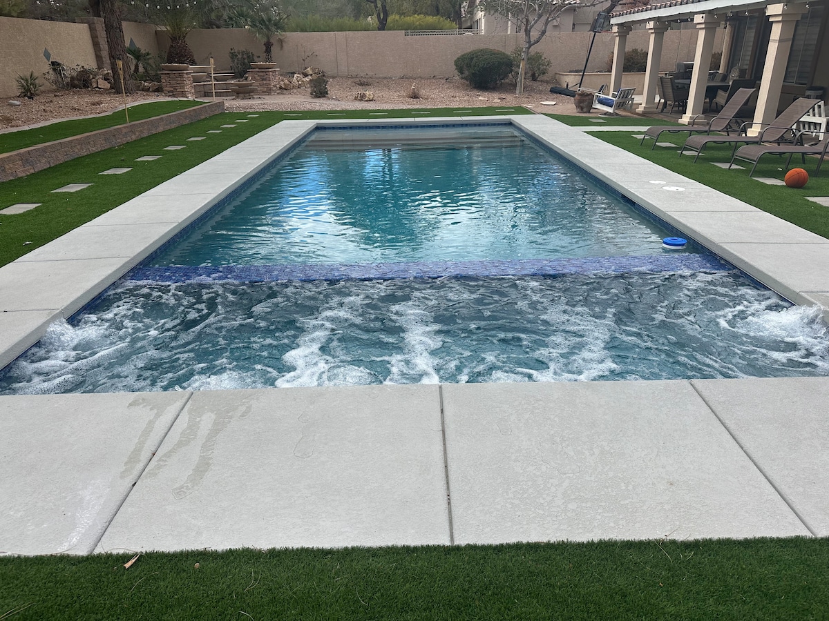 Վայելեք բացօթյա հանգիստը ստվերում կաբանայում կամ ցանցաճոճում ՝ հավաքվելով հրվանդանի շուրջ կամ սառչելով նոր ձևափոխված տանը ։ Վայելեք տաքացվող ջակուզին և ընդարձակ լողավազանը ։ Drive անգամ են միայն 2 րոպե դեպի օդանավակայան, 8 րոպե դեպի Strip, 12 րոպե դեպի Allegiant մարզադաշտ, եւ 14 րոպե դեպի Կոնվենցիայի կենտրոն: Տանը քնում է 8 հարմարավետորեն w/ 3 Queen & 1 King bed! Հիանալի խոհանոց, հյուրասենյակ, լվացքատուն, լողավազան և բացօթյա տարածք: Ուլտրա արագ 1000 Մբիթ/վ ինտերնետ: Ընտանի կենդանիներին հարմար է ։ Ծխել ՄԻԱՅՆ ԴՐՍՈՒՄ