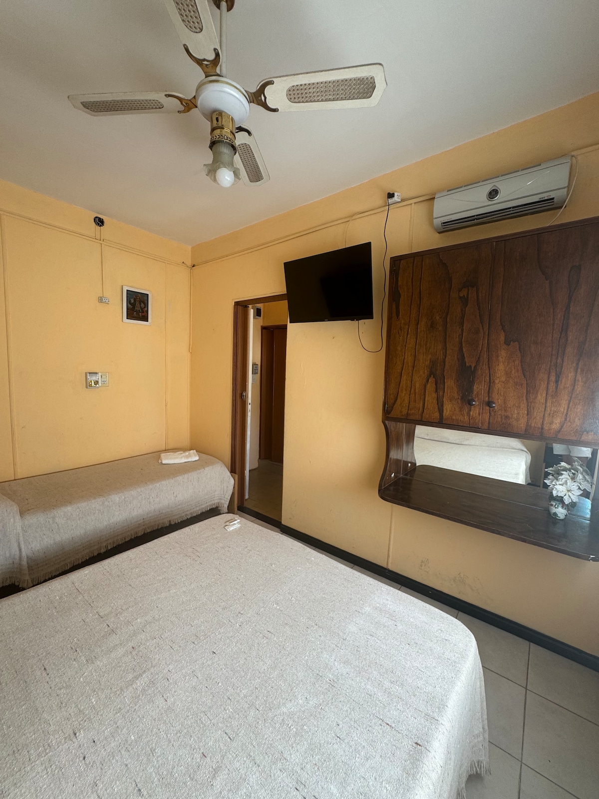 La tarifa que aparece en la plataforma corresponde a una habitación cuadruple. Incluye los servicios de: desayuno, cochera, habitación climatizada, baño privado, TV c/cable, WiFi, y estamos en pleno centro. Contamos con folletos de rotiserías y restaurantes con servicio de delivery al hotel, en caso de querer comer aquí nosotros le proporcionamos lo necesario para ello. Para nuestros clientes contamos con descuento en rotiserías y parrillas. No está permitido fumar en las habitaciones.